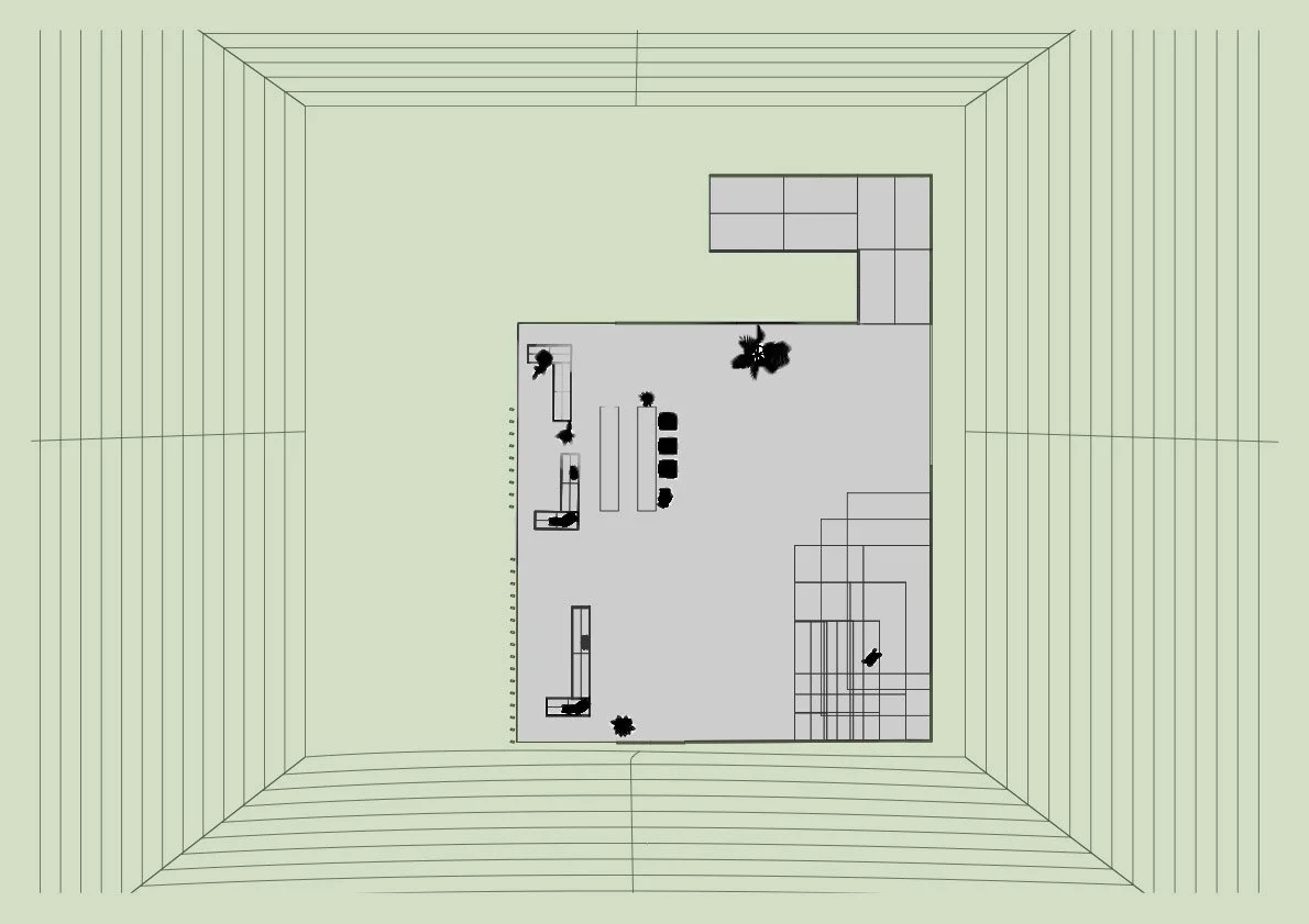 To emphasize the feeling of being outdoors, the walls are primarily glass, allowing natural light to flow through while maintaining a connection with the nature that’s on the rooftop. The ground level remains an open grassy field, offering a space for children to play, dogs to roam, and visitors to enjoy a sense of freedom in the heart of the city.